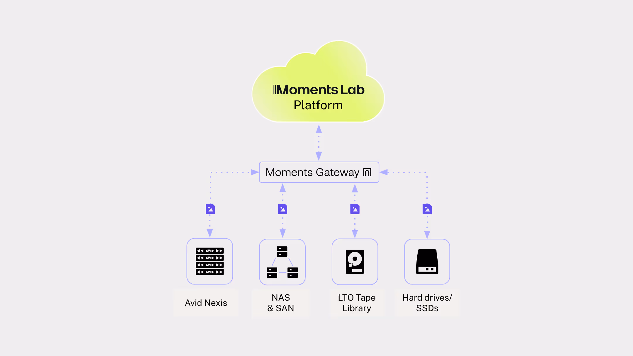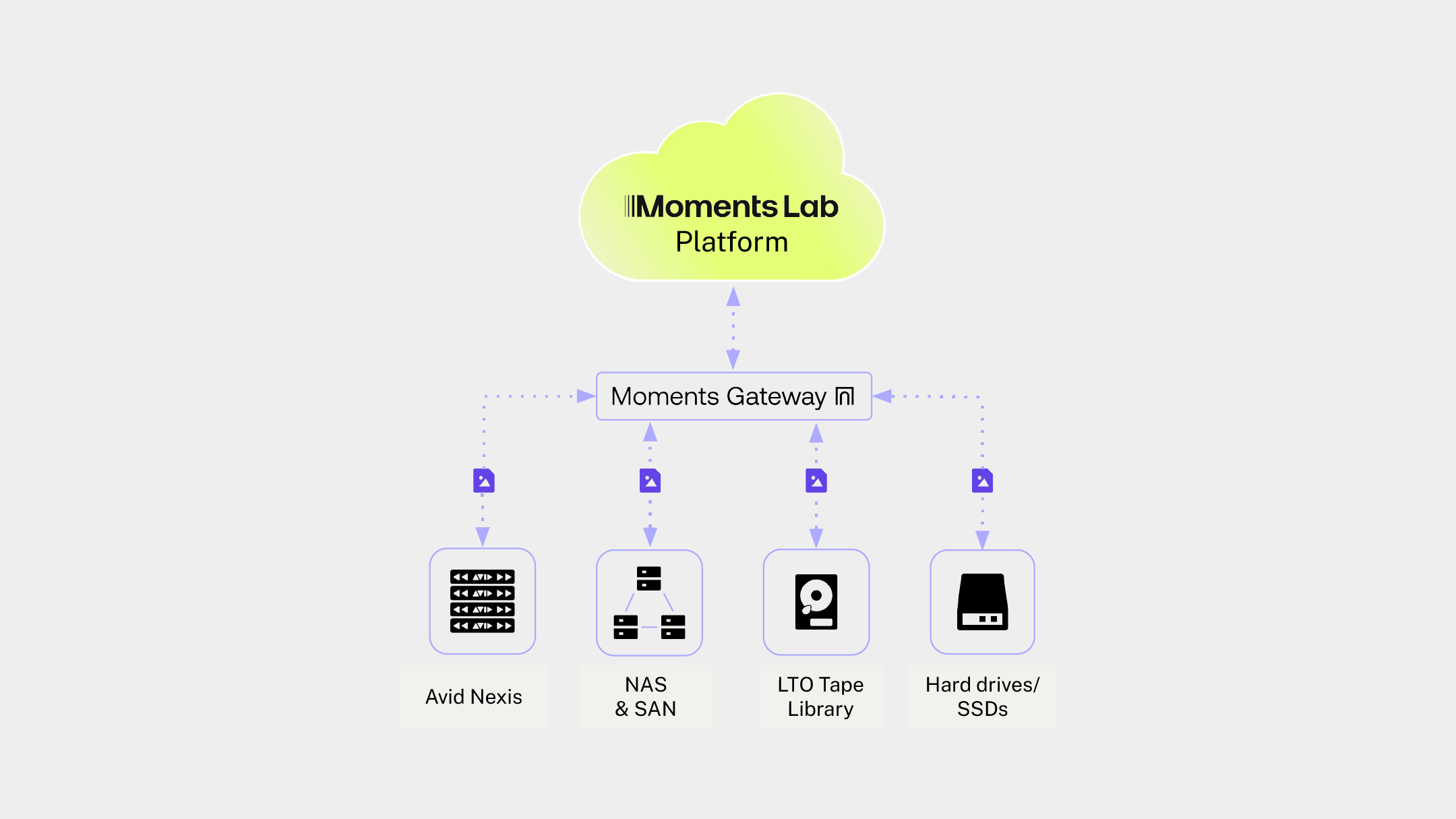Moments Gateway acts as a bridge between your existing storage and the Moments Lab platform.