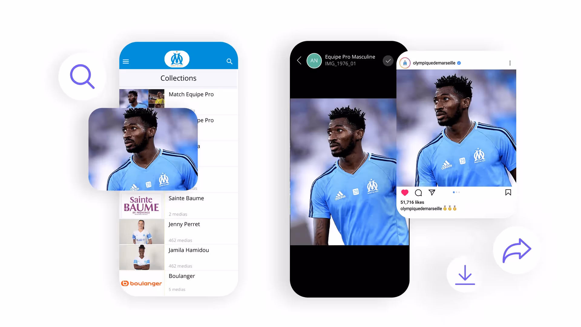 Through the mobile app, Marseille players and sponsors quickly and easily log in to the media hub to access customized highlights from the field. They can download and/or share photos directly to their communities on social media via the app, including Instagram and Twitter.
