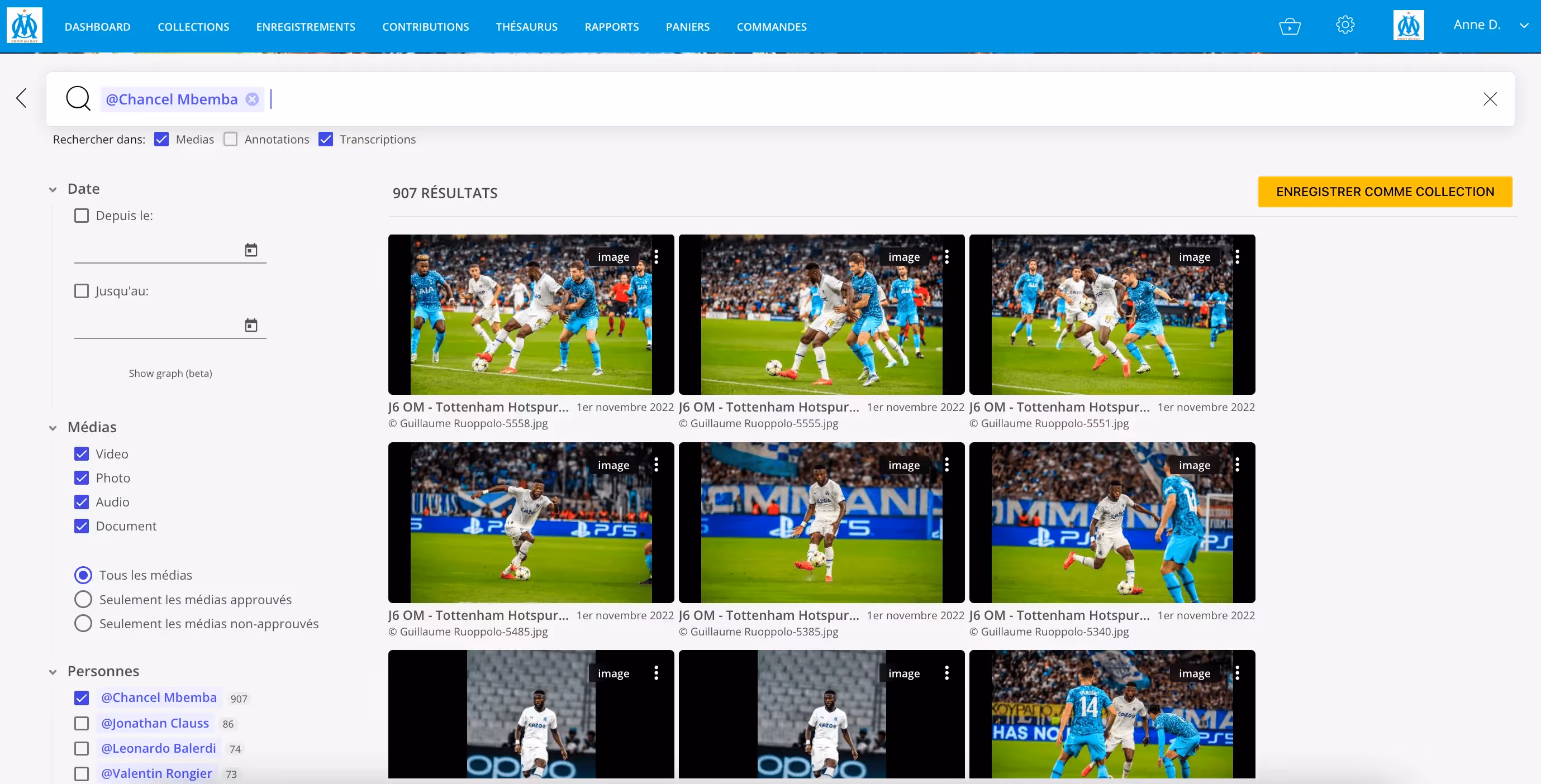77,000 archive photos were retrieved from Marseille’s former system and re-indexed in Moments Lab. The media is also categorized by event to make finding footage from past seasons even easier.