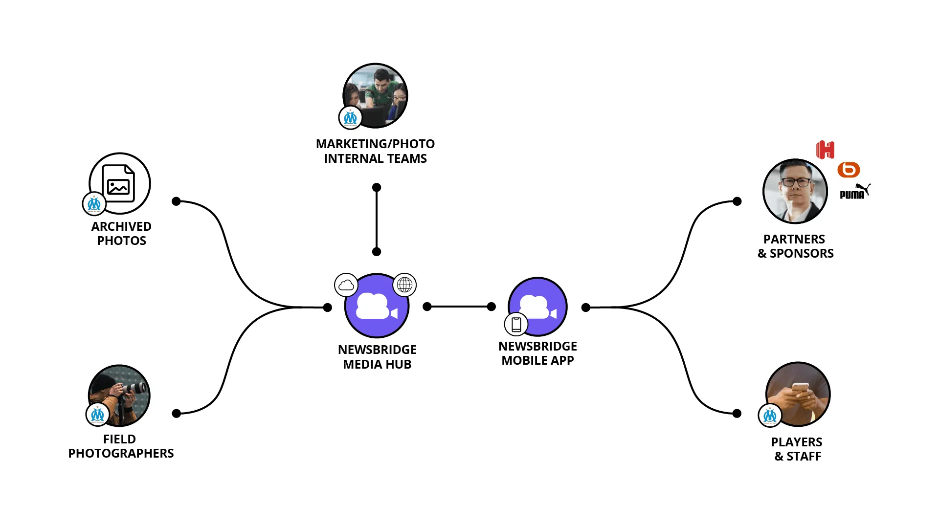 Grâce à l’application mobile, les joueurs et sponsors de l’OM peuvent se connecter rapidement et facilement au Media Hub pour consulter leurs moments forts sur le terrain. Ils peuvent également télécharger ou partager les photos sur les réseaux sociaux, comme Instagram et Twitter, directement depuis l’application.